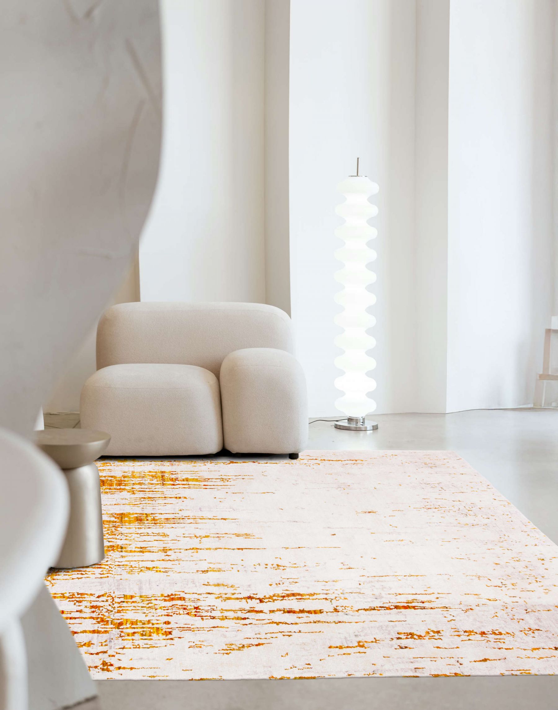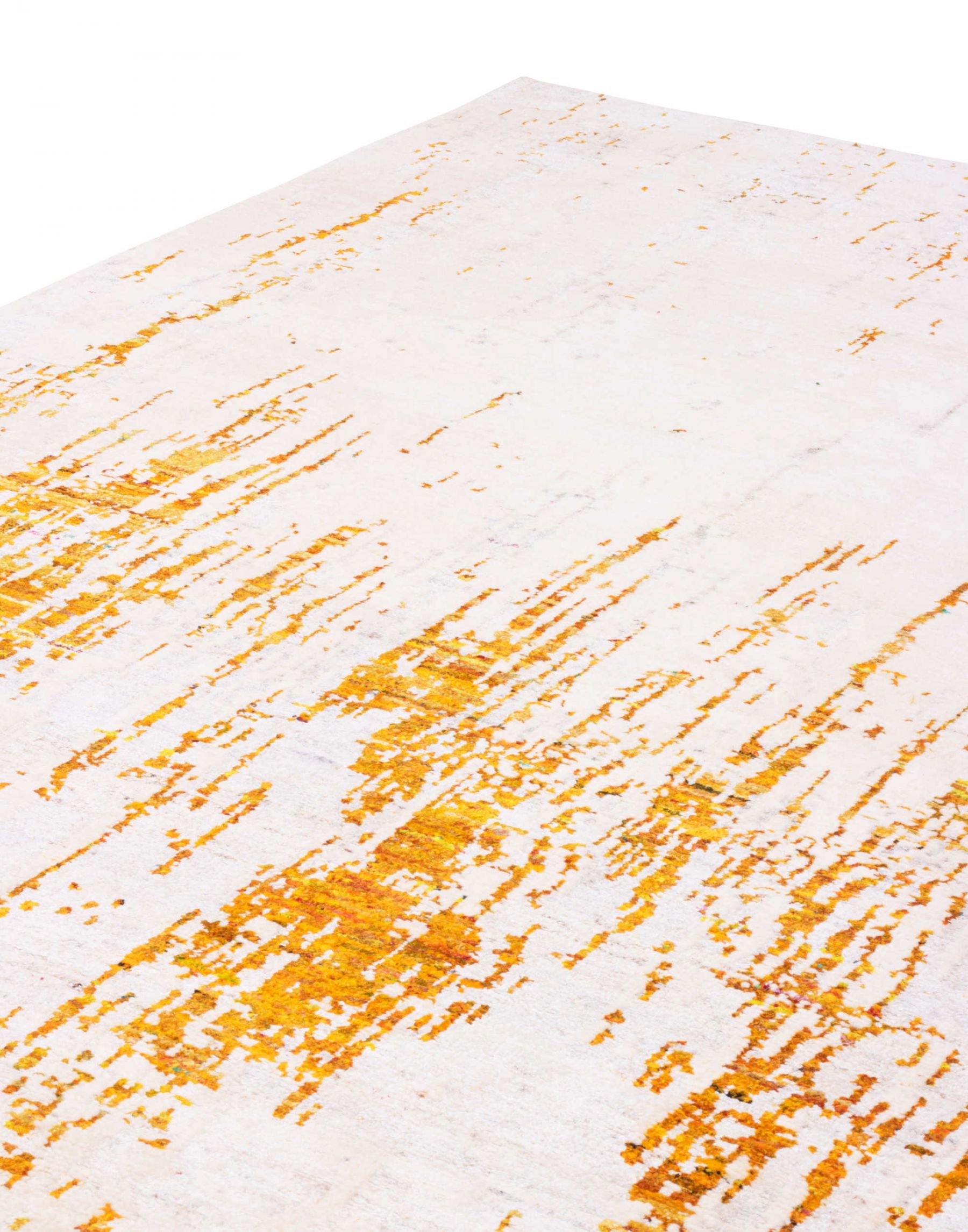 Der knallige Seidenteppich hat einzigartige Farbhighlights und eine außergewöhnlich seidige Haptik. Die modernen Designerteppiche der Sari Silk Kollektion bestehen aus recycelter Seide indischer Saris.